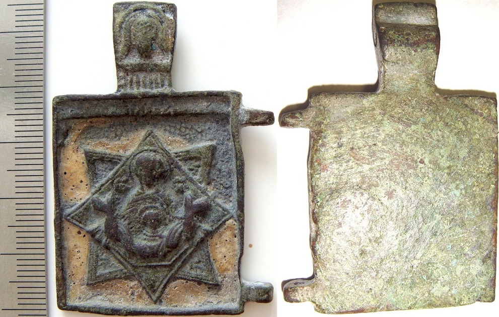 Место находки - г. Боровск Калужской области. Разместил ее здесь на Ваше усмотрение, поскольку имеющийся в каталоге вариант (со створкой) несколько иной и прежде всего по размерам, кроме того, эмали там полностью отсутствуют. Если сообщество решит что данное изображение нужно поместить в каталог я был бы только рад. С уважением, Андрей. Сообщение отредактировано Калистрат: Jun 2 2017, 11:41 Вложенные эскизы изображений -------------------- всё случается..