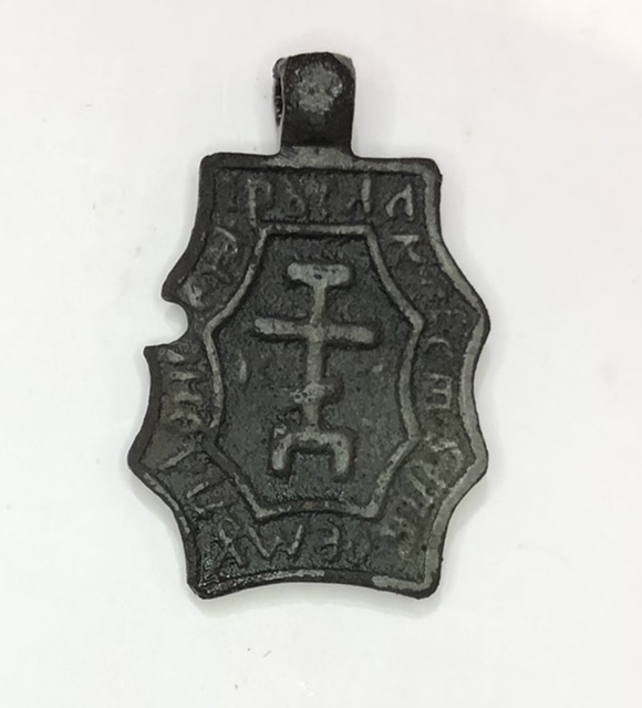 QUOTE(Николай П @ Aug 8 2022, 23:38) Добрый день, вот такой в каталоге не нашёл, может будет интересна как пополнение, ну если по периоду ещё подскажете, буду благодарен. Размер 27х19 Место находки Подольский район МО С уважением Николай Не точно такой, но близко. http://mednolit.ru/photo/priveski_golgofsk..._001/838-0-8430 |