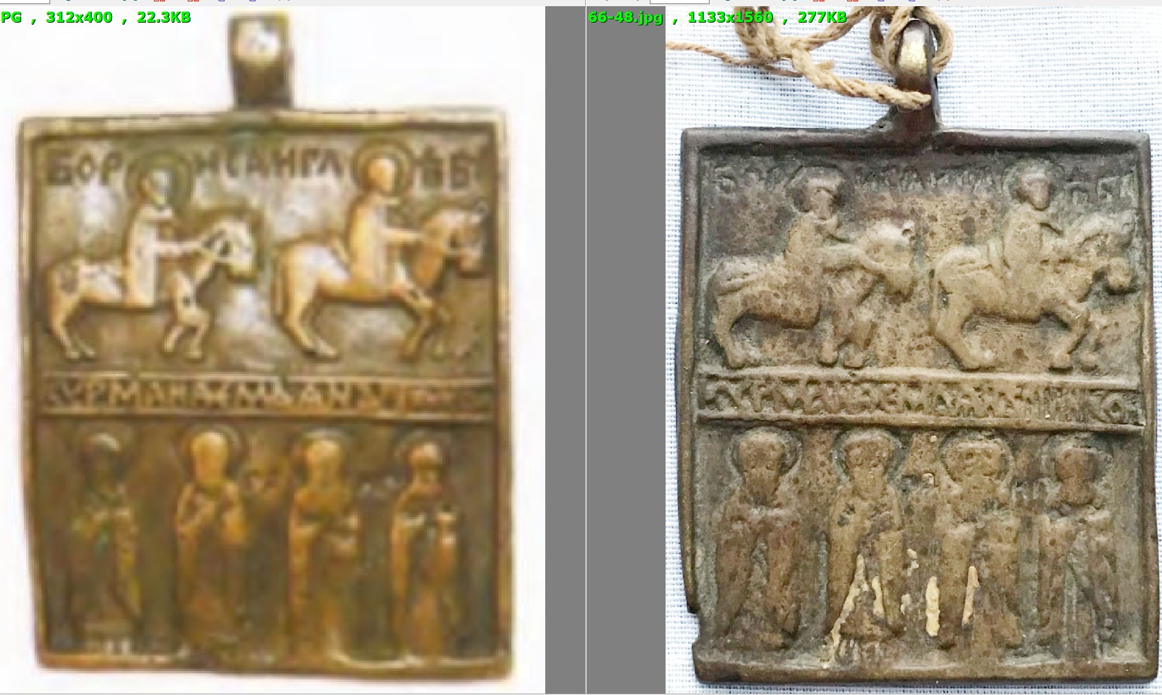 QUOTE(spsearch @ Jan 14 2023, 13:47) Илья, нужно добавить по этому змеевику Происхождение: Псковская обл. http://mednolit.ru/photo/obrazy_bogomateri...06a/593-0-10055 Угу, добавил, спасибо. Тут ещё парочка: Смоленская - там надо как-то чуть развернуть взаимное расположение, а то обратка на фото кажется косо отлитой. И Феодоровская - там у меня вообще никак не получается развернуть фото лицевой стороны... ![]() ![]() ![]() -------------------- Лучше обнаружить в яблоке червяка, чем его половину...