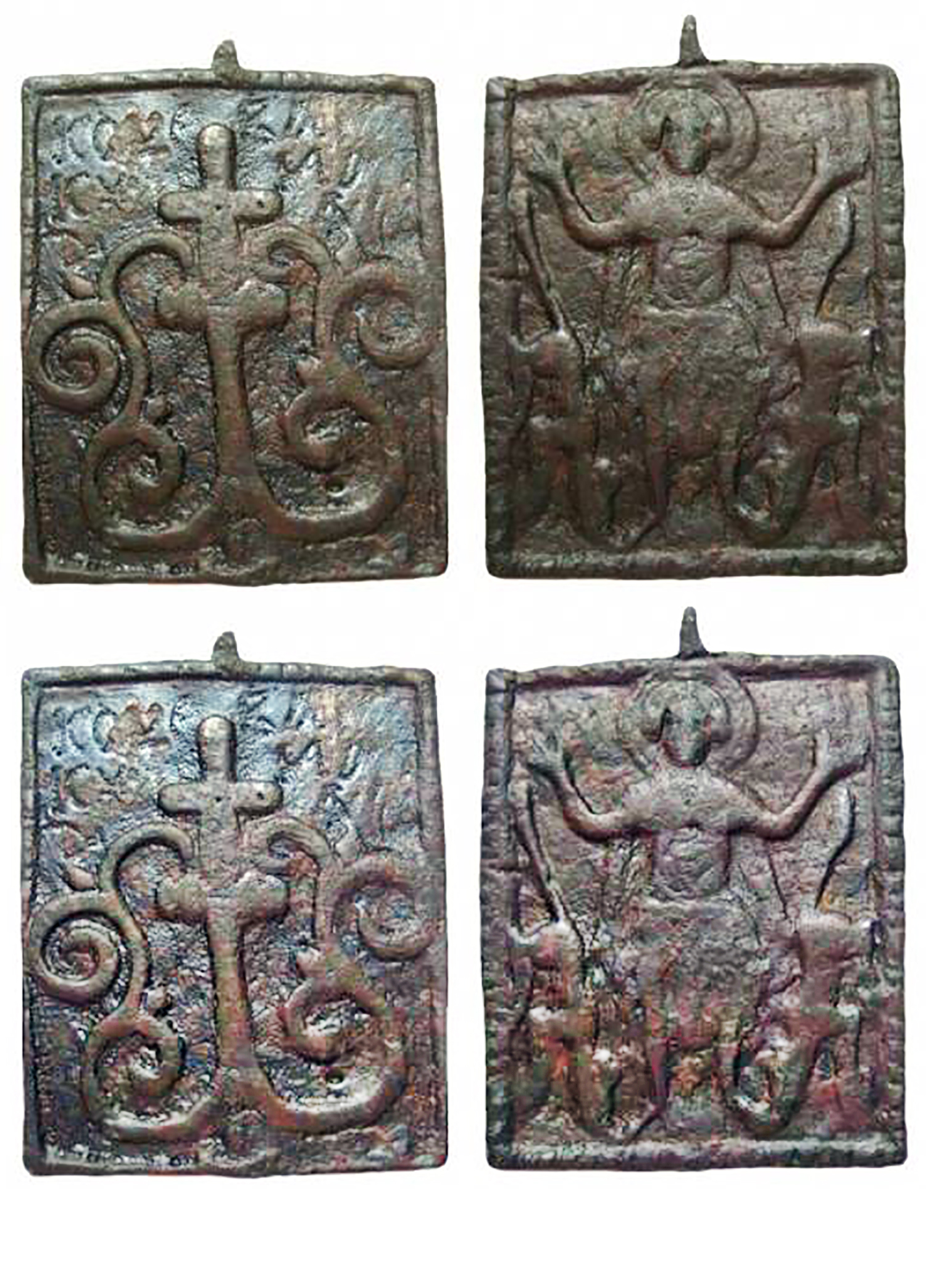 Размеры: 55 х 45 мм. Происхождение: Беларусь, Могилевская область, Мстиславский район. ![]() === Датировка: 15-16 (?) век Размеры: 75 х 55 мм. (по фото) Происхождение: Рязанская обл. ![]() === Датировка: 14-15 век Размер: 47 х 47 мм. (по фото) -------------------- - Расскажите о себе в двух словах.