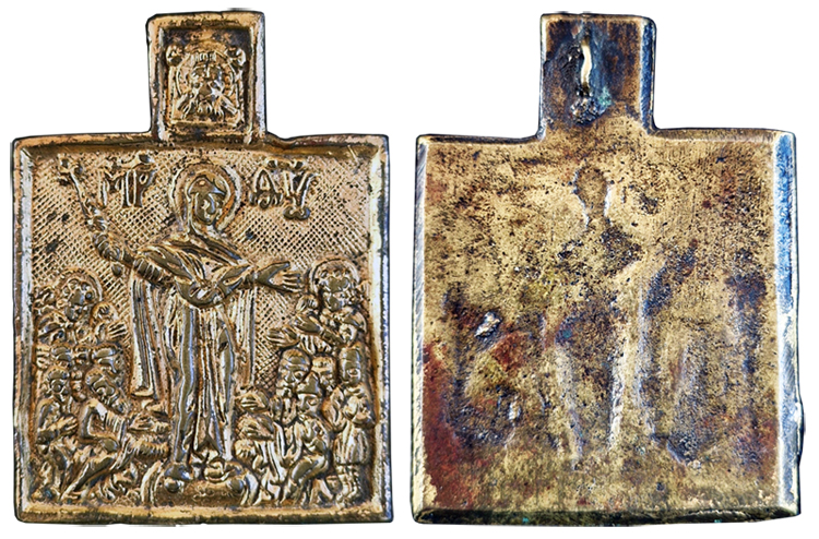 Икона (переливок с иконы-литика): ЧУДО ФЕОДОРА СТРАТИЛАТА О ЗМИЕ Происхождение: Орловская обл. Датировка: 14 - 15 век Размер: 38 х 25 мм Степень редкости: R9 Литература и аналоги: 1. Залесская В. Н. Литики XIII в. в собрании Государственного Эрмитажа // Древнерусское искусство: Русь. Византия. Балканы. XIII век. СПб., 1997. Рис на с. 154. 2. Музей Бенаки (Афины). Стеклянные медальоны с религиозной тематикой из византийской коллекции Музея Бенаки: вклад в изучение знаков паломничества в позднем Средневековье. 2004. C. 55-56. Fig. 5-6. 3. Никольская Т. Н. Редкая находка из Серенска // Древности славян и Руси. М., 1988. С. 45-47. Рис. 1. 4. Ross M.C. Catalogue of the Byzantine and Early Medieval Antiquities in the Dumbarton Oaks Collection. Vol. 1. Washington., 1962. C. 90. Plate LVII, 107. ![]() Сообщение отредактировано spsearch: Sep 17 2024, 16:54 |