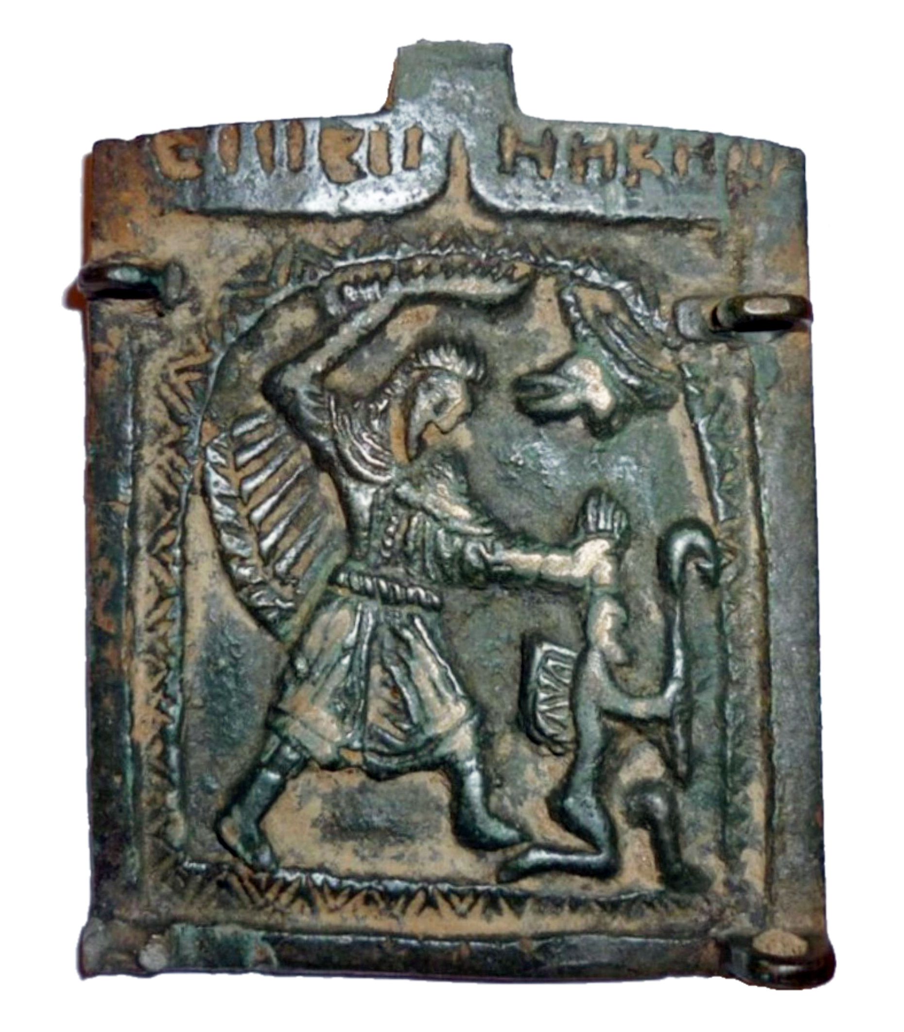 Отчитываюсь: Неизв. святые: https://mednolit.ru/photo/neatributirovanny...012/841-0-11794 https://mednolit.ru/photo/neatributirovanny...011/841-0-11791 https://mednolit.ru/photo/neatributirovanny...01/1225-0-11793 Смоленская: https://mednolit.ru/photo/obrazy_bogomateri...12a/339-0-11795 Воскресение: https://mednolit.ru/photo/prazdnichnye_ikon...01a/279-0-11792 Никита: https://mednolit.ru/photo/obrazy_svjatykh_1...035/388-0-11790 Киотные: https://mednolit.ru/photo/kresty/kiotnye_kr...014/651-0-11789 https://mednolit.ru/photo/kresty/f_obraznye...02a/943-0-11788 Девятка: https://mednolit.ru/photo/mnogosjuzhetnye_i...18b/437-0-11787 Печать: https://mednolit.ru/photo/ikony_pechati_x_x...034/874-0-11786 (У печати я всё-таки чуть повысил степень редкости от предложенной — за совмещение эпиграфики и изображения на одной стороне). По первой иконке (конный воин-триумфатор), точнее — по статье, которая её описывает — вижу смещение мнения о конных воинах в сторону Георгия. Причём имя Георгия выводят из слабо различимого Агиоса, точнее даже из двух слабо различимых букв из Агиоса. То ли это устоявшееся народное мнение "все святые на коне — это Георгии-победоносцы", которое давит на науку, то ли... То ли так и есть, чёрт возьми. Но подтверждений нету, достоверной выборки с однозначной эпиграфикой тоже никто не делал, поза триумфирующего всадника может быть приписана кому угодно, копья нет или поднято вверх, стяг на копье развевается (или отсутствует, но копьё всё равно вверх), змей уполз, триумфровать вроде как нечего... Ну или он сначала змею поверг, потом отъехал на пару шагов, и ка-а-а-к затримфирует!.. Сообщение отредактировано Калинин: Jan 15 2025, 16:43 -------------------- Лучше обнаружить в яблоке червяка, чем его половину...