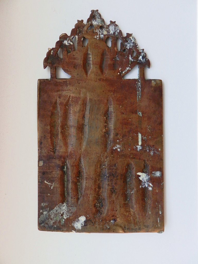 https://mednolit.ru/photo/obrazy_svjatykh/s...083a/111-0-7285 Поэтому как то так. Вполне возможно что это к.15-16в по датировке, но пока так оставим... Икона: СВЯТИТЕЛЬ НИКОЛА ЧУДОТВОРЕЦ Происхождение: Новгородская обл. Датировка: вторая половина 15 - начало 16 века Размер: 23 х 17 мм Степень редкости: R9 Литература и аналоги: Станюкович А.К. Неизвестные памятники русской металлопластики. Миниатюрные иконки-привески XI-XVI веков. М., 2011. С. 148. Табл. XII, 180. |
