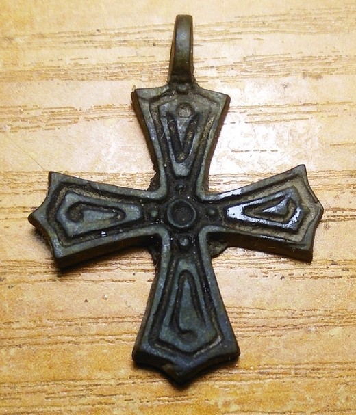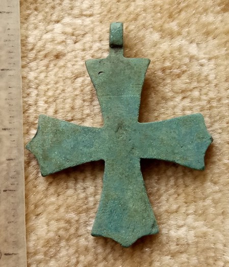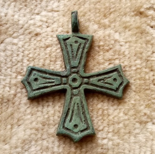 https://www.reviewdetector.ru/index.php?showtopic=3113999 Лопасти конечно расширяются....но думаю опять остановимся на прямоугольноконечном. По надписи думается две сиротливые буквы ИР на обороте - это продолжение все-таки текста на обороте. ПРЯМОУГОЛЬНОКОНЕЧНЫЙ КРЕСТ С ОСТРОКОНЕЧНЫМИ ВОЛЮТАМИ В СРЕДОКРЕСТИИ И ИЗОБРАЖЕНИЕМ ГОЛГОФСКОГО КРЕСТА Происхождение: Тюменская обл. Датировка: конец 17 — 18 век Размер: 58 х 34 мм Степень редкости: R4 Примечание: материал — серебро |