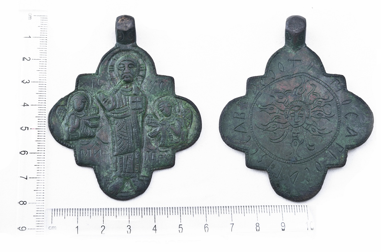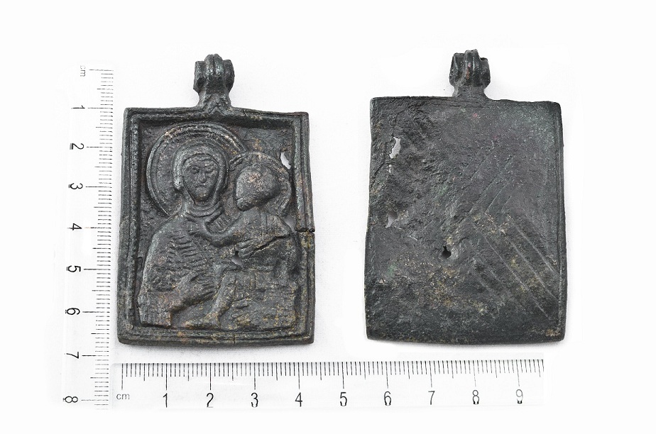 Тронная Богородица и Богородица Одигитрия с Андреевским крестом на обороте.