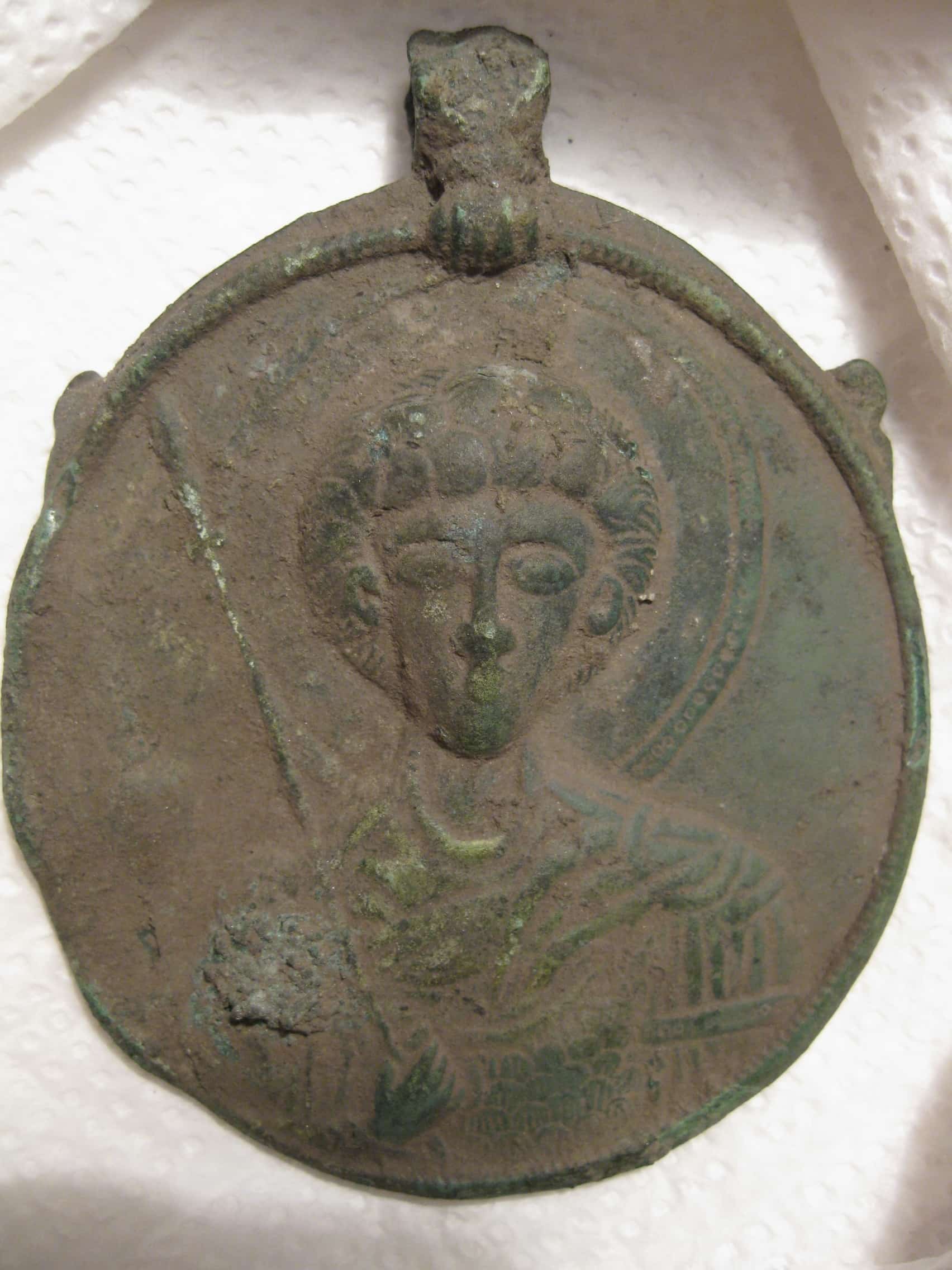 Реплика с дорогого византийского медальона выставленная пользователем "хорош" после находки, до расчистки.