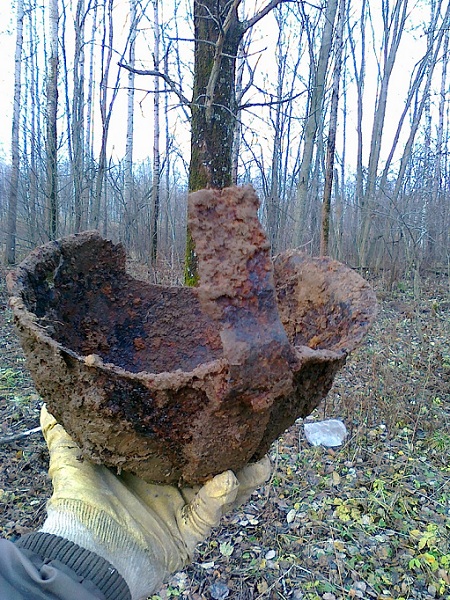 Попадается и такое, я на сигнал меди чет поленился лишний раз копнуть, а камрад поднял ))) Наука, ПРОВЕРЯЙТЕ ВСЕ СИГНАЛЫ!!! Иногда по войне попадается и такое, колокольчик найден на позициях в корнях дерева