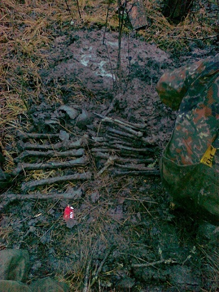 "Ганс в обвесе болотный" и расстреляный "госпитальный". На ноге металлическая шина, пуля в затылок. Рост очень маленький, возможно подросток.