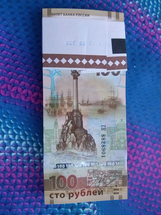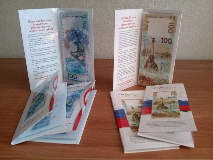 Продам памятные купюры достоинством 100 рублей "Присоединение Крыма и Севастополя", состояние пресс, серия "КС" и "СК" по цене следующее: