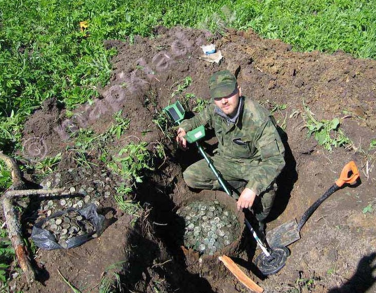 ...В общем когда я докопался до отметки сантиметров 50... Монеты, подумали вы? Нет, хренушки - подкова! Самая обычная конская подкова. Тьфу ты зараза, подумал я... И было начал закапывать ямку. Но что то внутри подсказало - проверь еще раз. И я проверил... Это я к чему такие акценты расставляю - не ленитесь проверять ямки, даже если вы выкопали из них какой либо металлический предмет. На моем опыте множество случаев, когда после выкопанного куска железа из той же ямки доставал монеты! И еще - решать конечно вам, но после этого случая с бочкой я всегда докапываюсь до цели, пока не увижу, что это ненужная чернина не успокоюсь! Второй раз закинул старик в море невод и пришёл невод, а вот теперь правильно - монетками! Так вот... Первая мысль - рассыпуха или кошелек, ведь на лопате выскочило порядка 10 монет, а земля осыпавшаяся в лунку закрыла остальные монеты. Я радостно взвизгнул! Причем даже и не надеялся, что в ямке осталось что то еще... Ну, думаю, может еще пару монеток в ямке будет и взмахнул прибором. Опять звенит! Я попытался копнуть глубже, но не тут то было! Лопата воткнулась во что то деревянное. И вместе с землей на поверхность вылетел кусочек полусистлевшей дощечки. Я немного удивился и бросив лопату, принялся разгр#бать землю руками. Монеты я сразу не увидел, видно они вскрылись немного в стороне. Моему взору предстала часть дощетчатой крышки, я не стал срывать эти дощечки, а принялся расширять ямку. И тут то я увидел то, откуда выкопал монеты, там крышка была сгнившей... Состав: бочка с монетами. Всего 201 кг (около 15тыс. штук) двухкопеечников 1810-16 года. + 200 двушек Павла. Оценено: около 21 000 $. Немного придя в себя и вдоволь наигравшись с монетами, мы принялись выгр###### содержимое в рюкзак. Велико же было наше удивление, что отсыпав всего лишь 1/8 а то и 1/10 содержимого бочки, поднять рюкзак было достаточно проблематично. Таким образом все содержимое переносилось в течение нескольких часов, я оставался сидеть над кладухой до последней ходки, так на всякий случай. Загрузив последнюю порцию, мы увидели, что машина села на ограничители хода подвески и медленно отправились на хауз! Сообщение отредактировано Dezalator: Apr 15 2017, 09:31 Вложенные эскизы изображений |