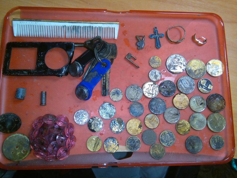 Сегодняшний второй выход в качестве подводной "охоты" На прошлых выходных прошёлся, а точнее поплавал на одном пляже (находки только 100 рублей десюнчиками) В этот раз заехал (после дождей) на дачу, и поскакал на пляж в гидраче с Гаррет про и скупом собственного производства (смотрим темы по продажам) Вот собственно за пару часов в одну сторону, против течения. В другую сторону в следующий раз. Цепка серебро. крестик кажется люминь, серёжка-две-серебро, одна из правильного металла, браслет - все вставки серебряные 925 проба. Ну и... "археологические предметы" восполняемые нашими современниками для будущих горе археологов и "чёрных копателей" Удачи всем ![]() ![]() -------------------- WhatsApp/Viber/Telegram +79377233512