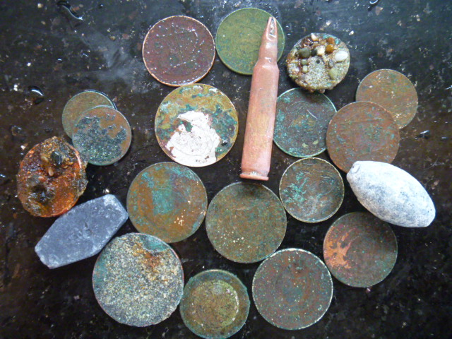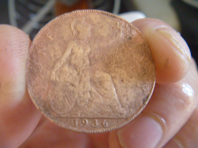 Сегодня прошелся по прибойке одного из подшефных пляжиков. В полосе прибоя размыто на пол-метра-метр вниз в некоторых местах. Фишер иногда слеп и глох от обилия черного песка. Свежих монет нет, случайно залетел 1 (один) юро.. Но есть и поинтереснее- пенни Геoрга Пятого, аккурат 1936г. Сохран правда другой, но монетка беZ-ценна....