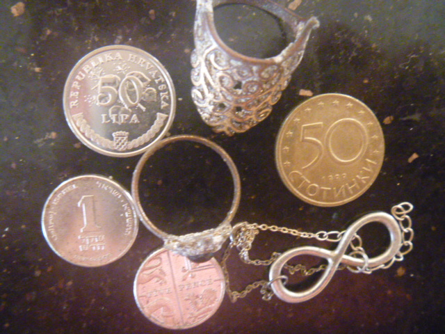 Два вечера- впервые 50 стотинок, 50 лир хорватии, 1 шекель, бижуха, ну и 84 евро.