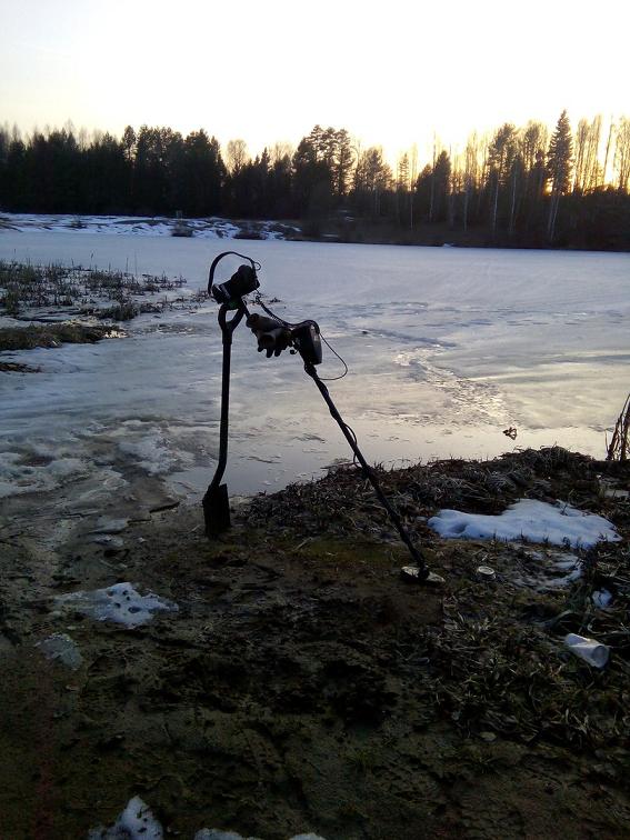 Сегодня после работы сгонял на разведку и открыл пляжный поиск,но пока только по берегу,на воде лёд ещё,ходить даже можно и песочек то только местами отошёл на берегу,пока шел к пляжу прошел по углу поля,поля то вот как раз отошли,ноги по сапог засасывает,зацепил обломок крестика и пуговку,но грязно очень,на пляже с новой катушкой чуток накопал за часик,думаю по воде через неделю только,обещают у нас завтра уже +20 градусов