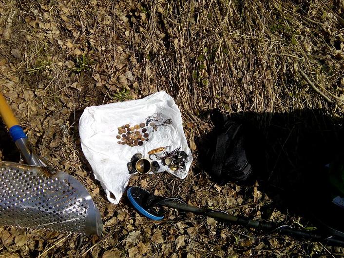 Сегодня, перед отъездом на Родину, закрывала зимний сезон. Устраняя белые пятна на карте, наткнулась на необычный для здешних мест пляжик. Вдоль песчаной стены тишина, но с края было что то типа шлюза и речки. Вот там все и лежало. Из интересного прибалты, 2 футбольные монетки из одной ямки и не опознаваемый жетон.