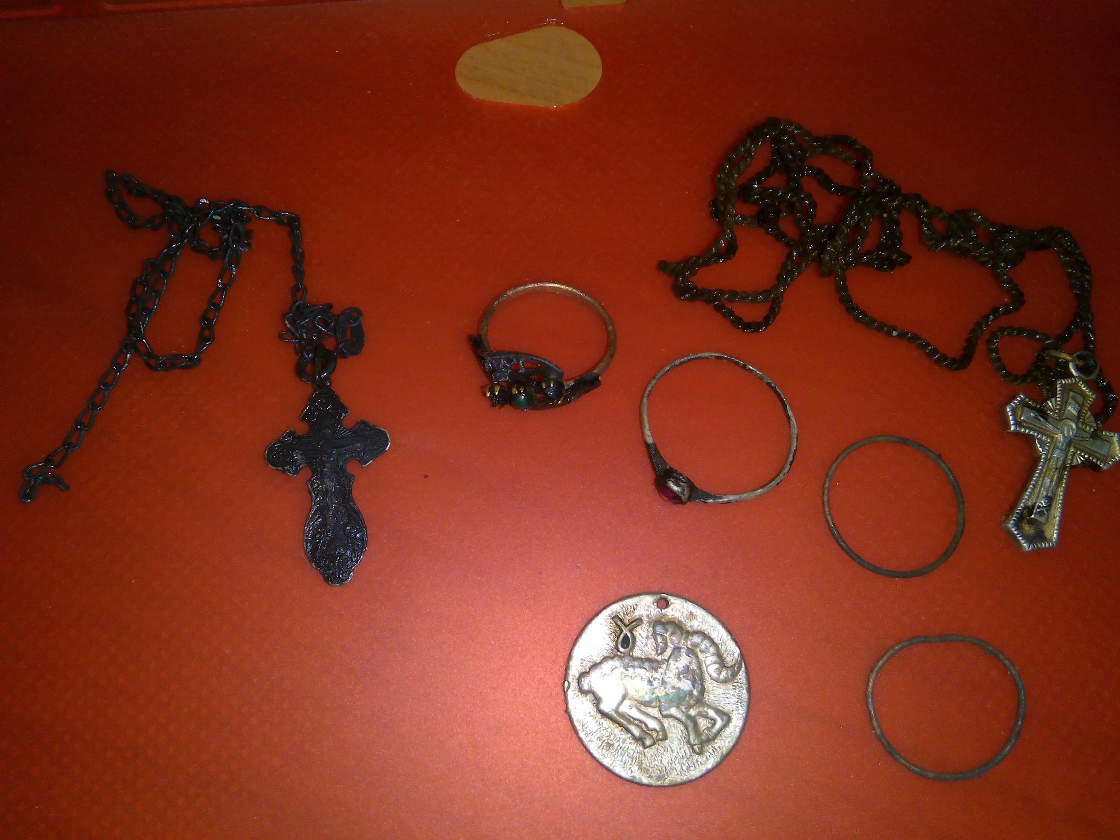 QUOTE(Podmoskovnyu @ Apr 12 2016, 17:36) Из серебра только крестик с обрывком цепки,остальное бижуха издалека показалось что одно колечко то что надо с серебряной вставкой окислившейся.. |