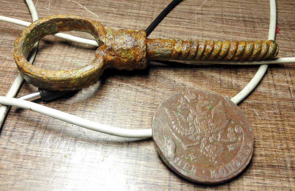 Ходили на днях с товарищем по старому тракту, прибор терра 305,катушка DD 18,75. сигнал был тихий 44 -4, накрест не крестилось сигнал терялся, у товарища ася 250 скакало по всей шкале, на таких сигналах обычно ржавое железо. Решили копануть, на штык фискаря ничего нет, зацепил только пином на дне ямы, вот результат. Вложенные эскизы изображений |