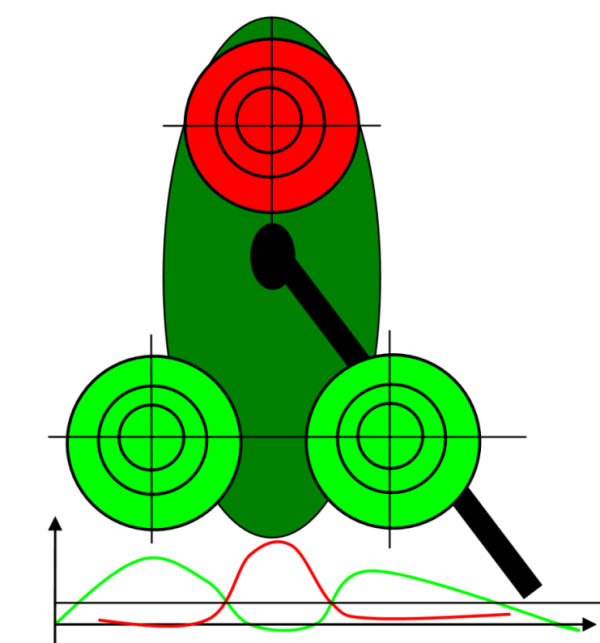 По некоторым просьбам. Бигфут - не совсем правда классический, но все же .... внешняя обмотка овальная - передающая, внутри овала - скрученная восьмеркой приемная. У меня вместо скрученной восьмерки - две совершенно одинаковые близняшки приемные (фото). Половинки соединены ПРОТИВОФАЗНО, то есть когда в одной из них сигнал растет, в другой точно с такой же амплитудой уменьшается, таким образом сигналы от больших площадных обьектов (море, морское дно) автоматически прямо в катушке взаимно вычитаются, а мелкие цели (монета, кольцо, серьга) попадая только под одну из половинок - дает четкий сигнал. Конечно исходя из принципа работы бигфута - применять его на мусорных территориях проблемно, ведь когда 2-3цели под половинками бигфута - разобраться кто где - сложно, но можно, приподнимаешь катушку на 45 градусов и передним носочком пинпоинтишь цель (инверсная в этом случае удалена и не сигналит). Поиск ведется обоими половинками, только под "прямой" половинкой цветная цель дает одинарный сигнал, а под инверсной половинкой цветная цель звучит двойным сигналом (см. рисунок), черные металлы обе половинки не озвучивают никак, грунт вычтен как я и пояснял. Классический бигфут - вообще как стеклоочиститель: 7-9смх45-50см , у такого глубина поиска по кольцу-монете-серьге до15см, но обширные пляжи им можно прошерстить ощутимо быстрее....