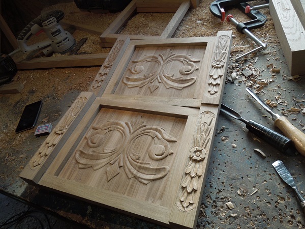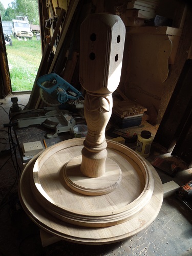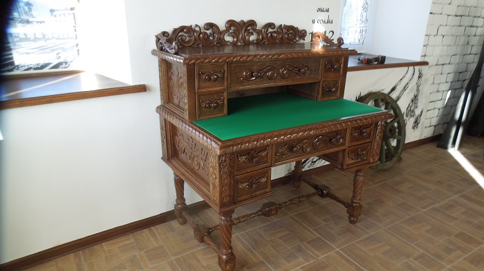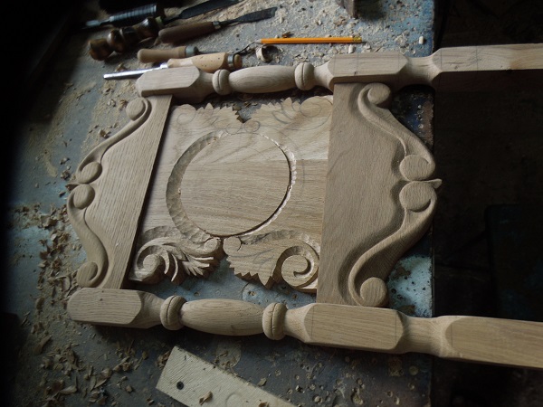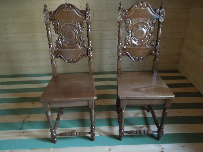 класные работы..хотя есть аляповатость,у секретера верхняя резьба тяжело смотрится убери её он практически ничегоб и не потерял,а у стульев шикарные спинки ...невяжутся с табуретностью стула(верх тяжелее и мощнее низа)...но в целом покорен...Сам имею опыт ,10 лет краснодеревному делу отдал,могу повторить всё вами сделанное легко,но без резьбы..Удачи!