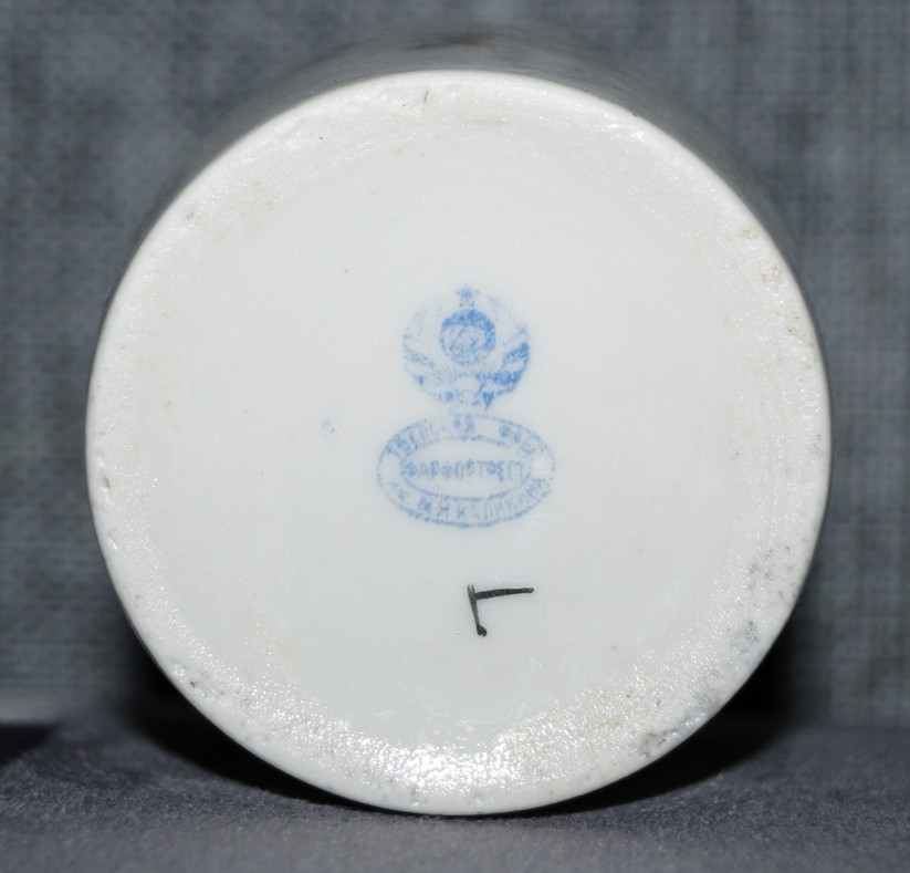 Тверская фарфоровофаянсовая фабрика имени М.И.Калинина в Кузнецове. РСФСР - производство 1924-1927 г. (судя по заводской маркировке). Размеры: высота 76,5 мм, макс. диаметр 66,5 мм. Состояние отличное (крышки нет). Небольшой торг уместен. Пересыл на покупателе. Цена - 1500 рублей. Вложенные эскизы изображений |