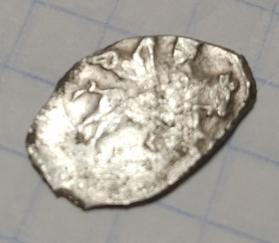 Кашин Деньга Иван Борисович. Вес 0.53 г. в звоне, трещин и подломов нет. Л. С. Два человека друг напротив друга, поражающие копьями животное. О. С. Печать князя Ивана Борисовича. Фото с телефона. Спасибо! |