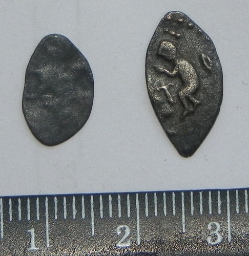 QUOTE(Gorin @ Jul 1 2011, 21:24) Подскажите по цене определялась на дружественном форуме. Фальшак времен Василия Дмитриевича. По мотивам его денги "двуногий дракон с раскрытой пастью", Мец.243. Не исключаю также, что это окончательно выродившийся тип Мец.243...244. Штемпель строчника на них ("князь великий") резан неряшливо, а тут и вовсе нечитаем, налицо некие буквоподобные значки. [attachmentid=474810] Неужели нет ни каких вариантов? Не разу такой не встречали? -------------------- Искать, найти, копать и перепрятать