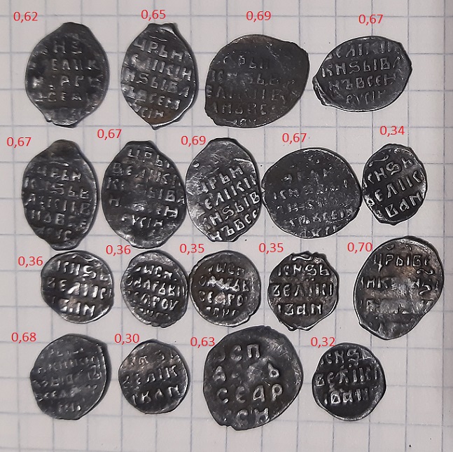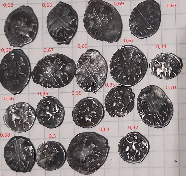 QUOTE(allsandro @ Nov 17 2020, 12:08) Коллеги прошу определить по КГ и оценить,две чешуйки. 1.Иван Грозный копейка вес 0,64 2.Денга Михаила Фёдоровича.вес 0,21 КГ74 и КГ674 , недорого -------------------- бывший ник аким
