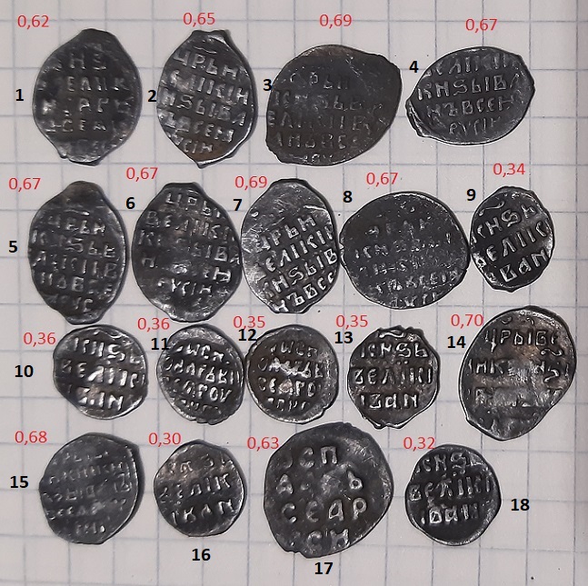 Добрый вечер. Подниму, помогите определить чешую, все простые или есть не частые. регион Тульская, вес на фото. С уважением [/quote] 11 и 12 пореже, 17 не И.Грозный более ранняя. Навскидку Остальное всё Грозного И.В [/quote] Спасибо большое. |