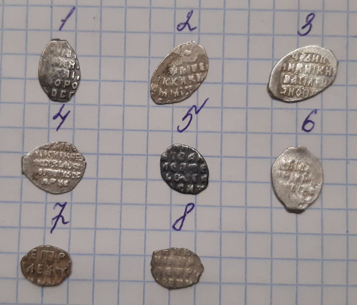 QUOTE(The Black Rider @ Dec 15 2020, 23:51) 1,2,4 - московские копейки Михаила, 3 - Шуйский, Псков, 6 - шведская оккупация Новгорода, 5 - сильно обрезанный Иван Алексеевич, 7,8 - Петр,единоличное правление, копейки Кадашевского(7) и Старого(8) дворов. Все простое и не в лучшем виде, Шуйский и швед самую малость подорожепрочего. Спасибо за помощь С уважением Артем |