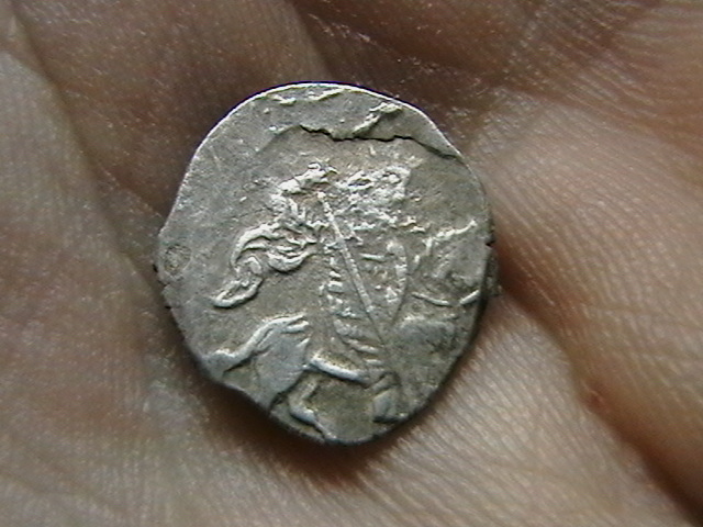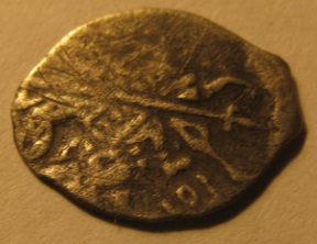 QUOTE(partizanov @ Jul 18 2011, 10:04) Ранняя копейка Грозного, номер 75 по Клещинову-Гришину. Рублей 50. Спасибо,Огромное.!!!Псковская копейка Грозного, №95 по К-Г. Новгородская копейка Годунова, 1600 г, номер 209 по КГ и тверское пуло "птица влево". Это следы двойного удара. -------------------- Не то золото,что блестит...Жена называет меня золотом,когда трезв)))Спасибо МД,стал золотым.