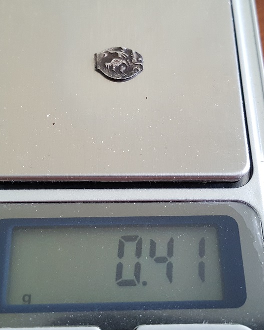Здравствуйте! Подскажите пожалуйста по оценке монеты ✓1 определенную как "Фальшивая Московская деньга Ивана 3(того времени). Вес 0,3 г , но мне кажется мои весы врут.