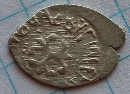 QUOTE(Куровод @ May 17 2021, 21:14) Доброго дня, камрады. Помогите с определением монетки, первый раз мне попадается такой всадник, а обратка затерта. Не могу сам понять чья она. Иван или Василий III |