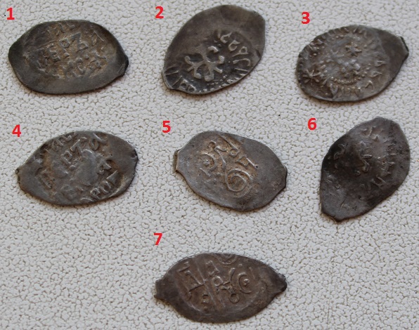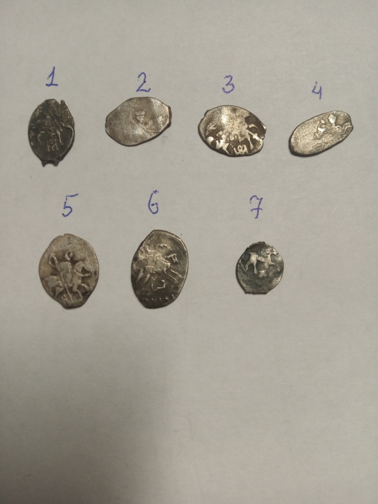 QUOTE(aksenov- @ May 25 2021, 09:40) Здравствуйте. На сколько я смог сам определить первые три Михаил Федорович. Четвертая Алексей Михайлович. Последние 5,6,7 определить не смог. Просьба высказаться прав я, или нет. Заодно определить оставшиеся. Так же интересует цена, есть что редкое, или нет? С уважением. Приветствую, по первым четырем верно. 5. Псковская копейка Грозного, 1535-1547 гг, частая. 6. Новгородская денга Василия 3-го, частая. 7. На сколько вижу - денга Грозного... -------------------- Чтобы избегать ошибок, надо набираться опыта, чтобы набираться опыта, надо делать ошибки...