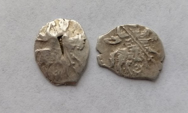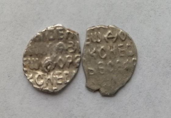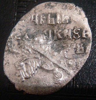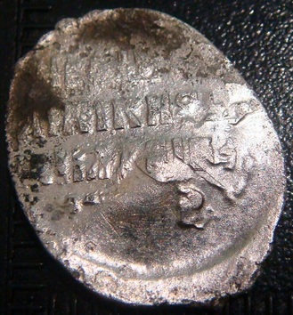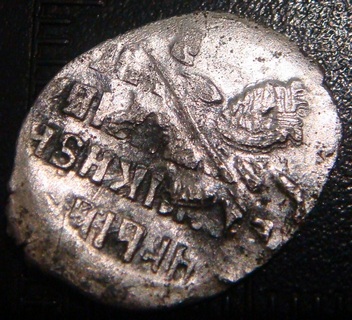 Вес 081г.Нашел только одно описание. И больше не чего нет. Редкий вариант с изображением фигур в зеркальном виде (князь справа, вассал слева). |