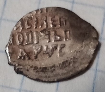 Вес: 0.96г, диаметр 17...18мм, место обретения - Северо-Запад Тульской. Это Иван Федорович? По датировке можно ориентироваться на Гулецкого, Петрунина, 2017, номер 5982? Легенда по сторонам квадрата с обеих сторон. На одной стороне (оборотной) - зеркальная легенда. С уважением. Вложенные эскизы изображений |