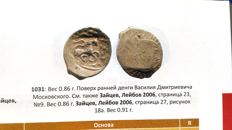 QUOTE(le_go @ Jun 25 2021, 15:03) Здравствуйте! Сориентируйте, пожалуйста, по редкости и цене чешуйки. Вес 0.63 г. Найдена в Ярославской обл. Думаю, что чеканили при Василии II Тёмном. ![]() Заранее благодарен! Чеканил Василий Дмитриевич, т.н. декларативный чекан - от своего имени и имени наследника Василия II, чье имя и размещено на ОС вокруг сцены борьбы со львом. Рубеж 10-х 20-х годов. Эта пара маточников одна из наиболее ранних в данном чекане. -------------------- Интересует любая информация по денежной чеканке Василия Темного.