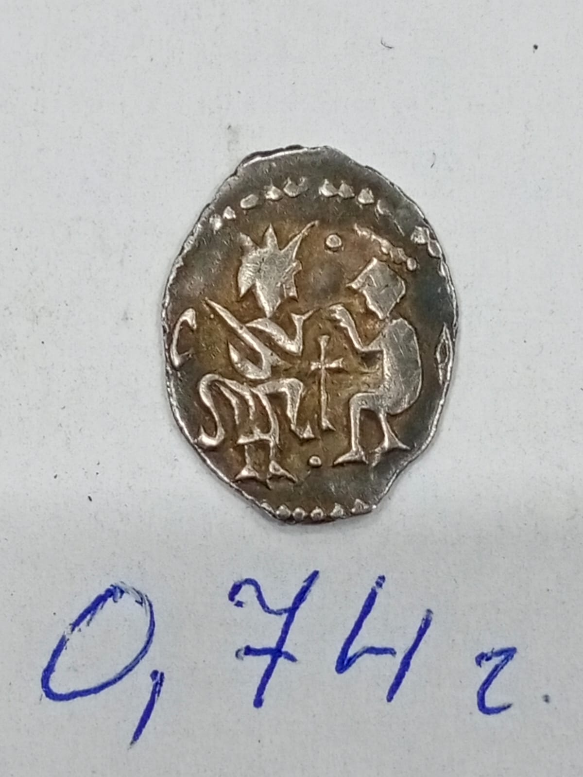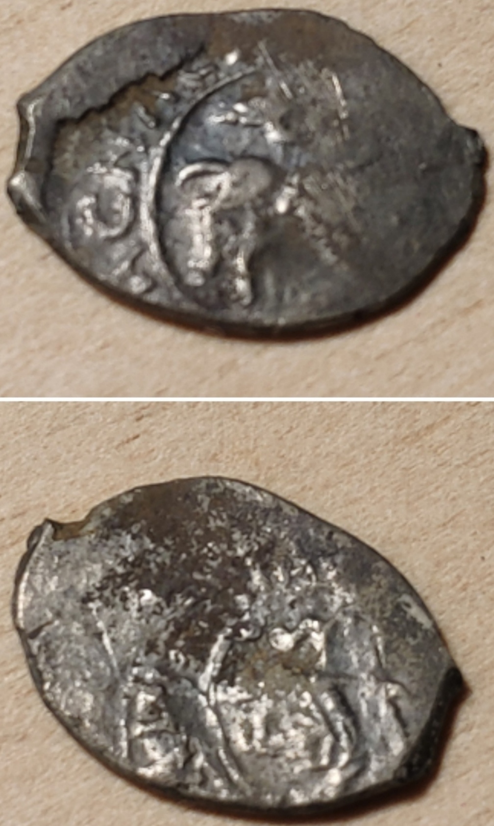 QUOTE(Wrongsky @ Sep 19 2021, 13:49) Коллеги, прошу помощи с определением серебряной чешуйки. Состояние уставшее, моск. обл. На одной стороне вроде бы птица, на другой какое-то изображение, может всадник или лучник, но не точно. Полушка Грозного. -------------------- «Omnia homini, dum vivit, speranda sunt».