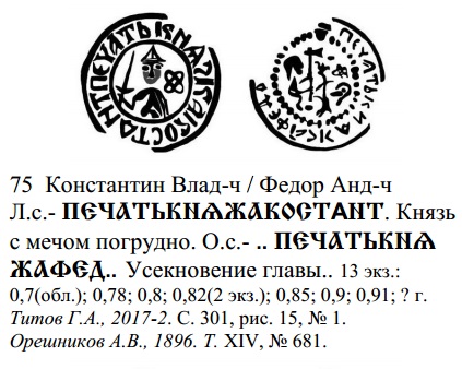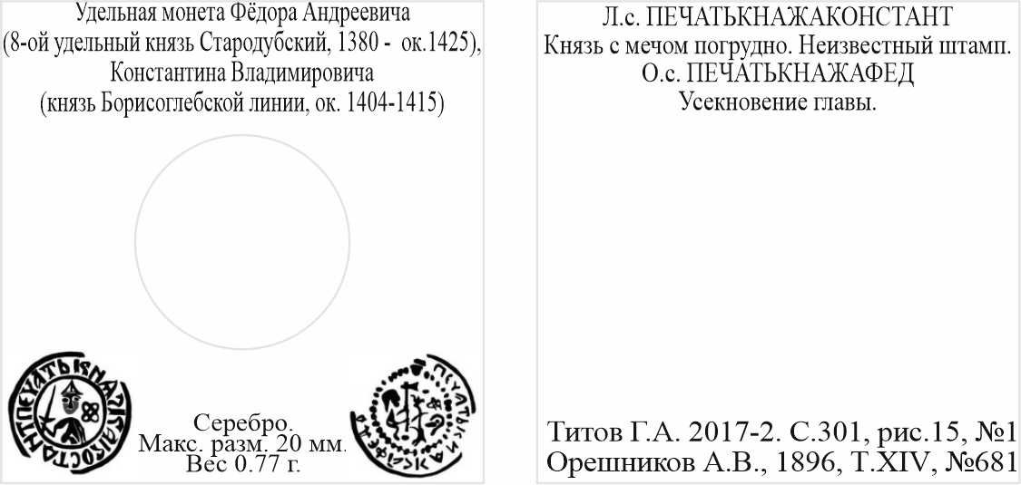 QUOTE(xznum @ Nov 29 2021, 18:39) Ростовское княжество Чего-то вроде этого, только другой штемпель лицевика Спасибо. Да, очень похоже на Федора Андреевича (стародубский) по обратке. Точно совпадает имеющийся фрагмент. А вот на лицевой "треуголка" смещена. Какой-то неизвестный штамп лицевой стороны, наверное. |