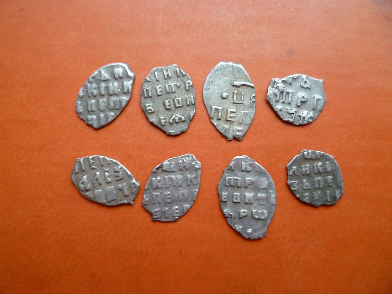 QUOTE(Velimir @ Jan 16 2022, 13:36) Здравствуйте! Прошу помощи в определении по КГ. Заранее благодарю! Датированные копеечки Петра I Алексеевича, выбитые в период его единоличного правления. 1. КГ 1631(9-12), выбита в 1700 году на Старом денежном дворе, рядовая. 2. КГ 1630(9-11), выбита в 1700 году на Старом денежном дворе, рядовая. 3. КГ 2063(42-96), выбита в 1707 году на Кадашевском денежном дворе, рядовая. 4. КГ 2021(34-83), выбита в 1704 году на Кадашевском денежном дворе, рядовая. 5. КГ 2038(37-71), выбита в 1705 году на Кадашевском денежном дворе, рядовая. 6. КГ 1651(15-14), выбита в 1701 году на Старом денежном дворе, редкость VIII. 7. КГ 1674(20-15), выбита в 1701 году на Старом денежном дворе, рядовая. 8. КГ 1681(22-26), выбита на Старом денежном дворе c литерой «M», рядовая. -------------------- Знаешь - говори, хочешь узнать - слушай