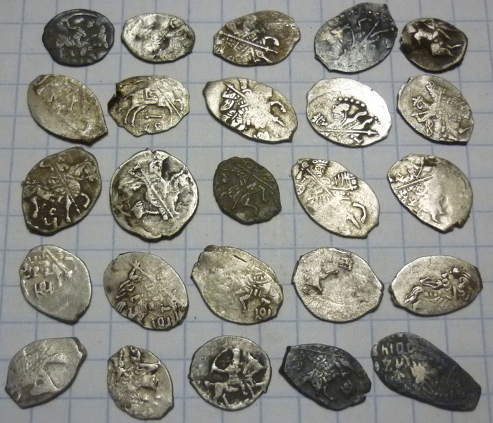 QUOTE(TimurAhmet @ Jan 17 2022, 10:46) Похоже на фальшак того времени под новгородку периода независимости. На л.с. слева стоящая фигура, верно? Легенда о.с. нечитаемая. Никакого отношения ни к фальшаку, ни к денге независимого Новгорода не имеет. С уважением Александр -------------------- При моем выигрыше в аукционе - стучите в лс.