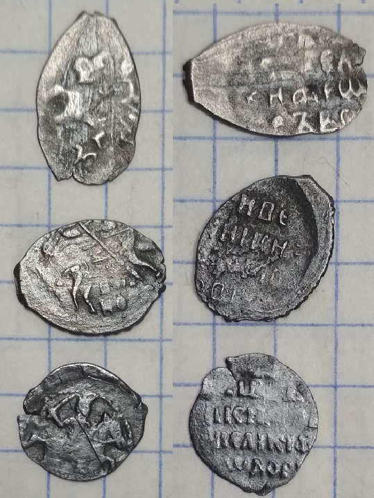 QUOTE(The Black Rider @ Jan 31 2022, 15:24) Все - Федор Иванович; 1,2 - копейки (псковская и новгородская), 3 - деньга. КГ 137, 117, 105. Спасибо. |