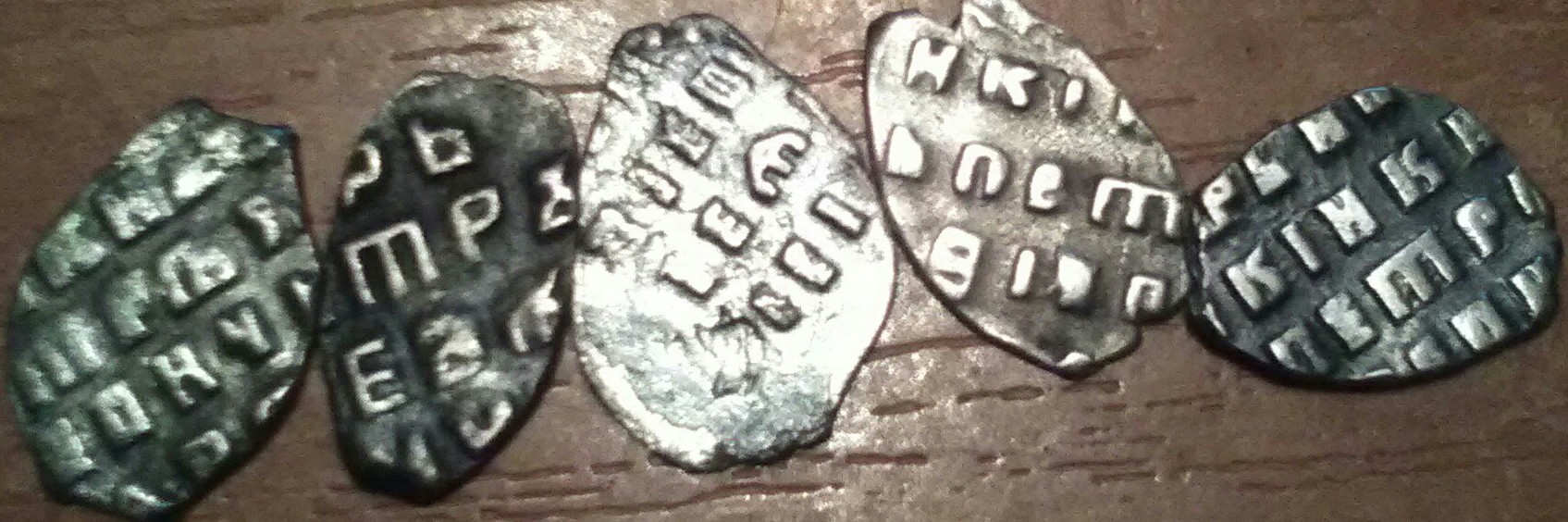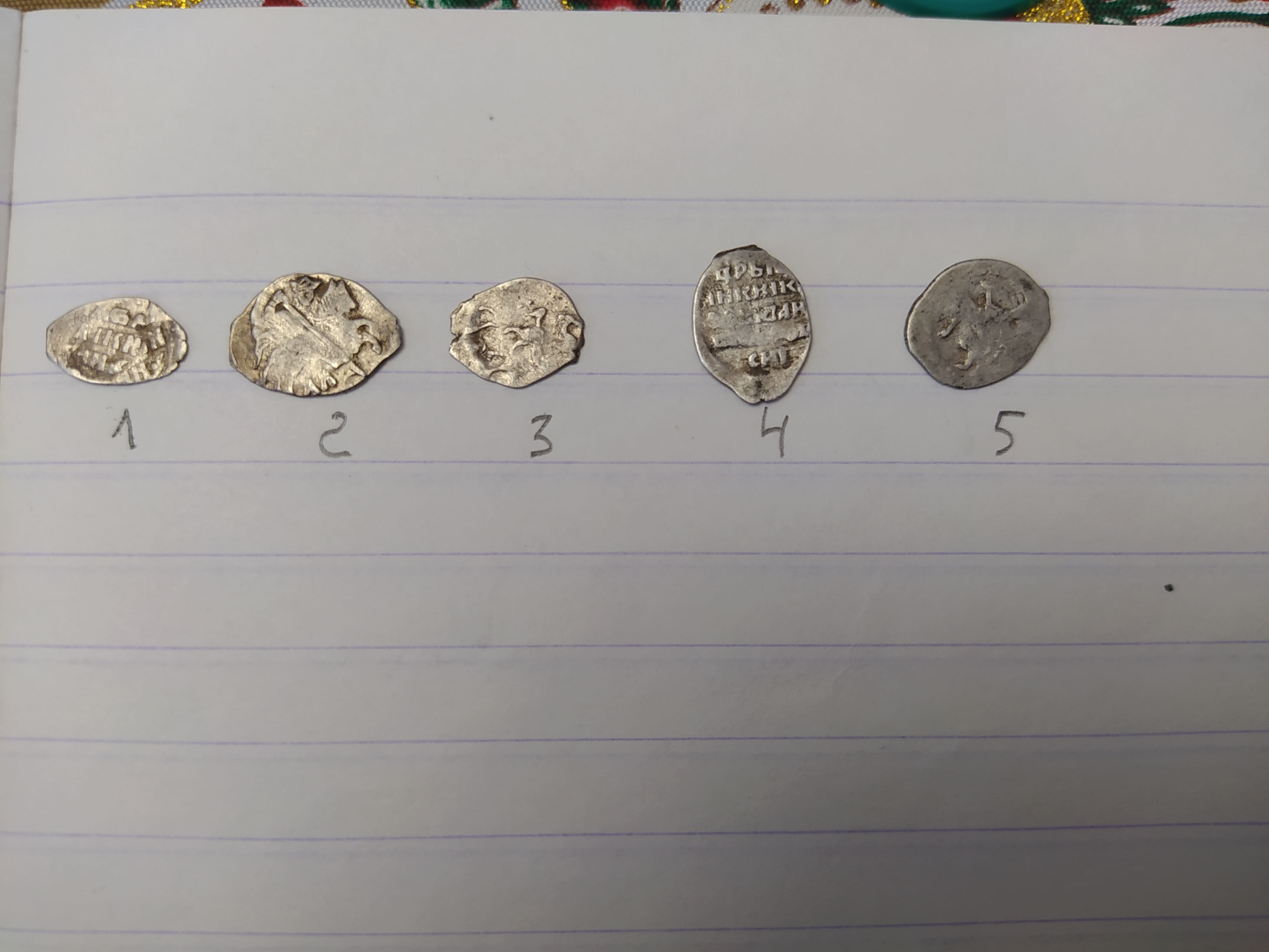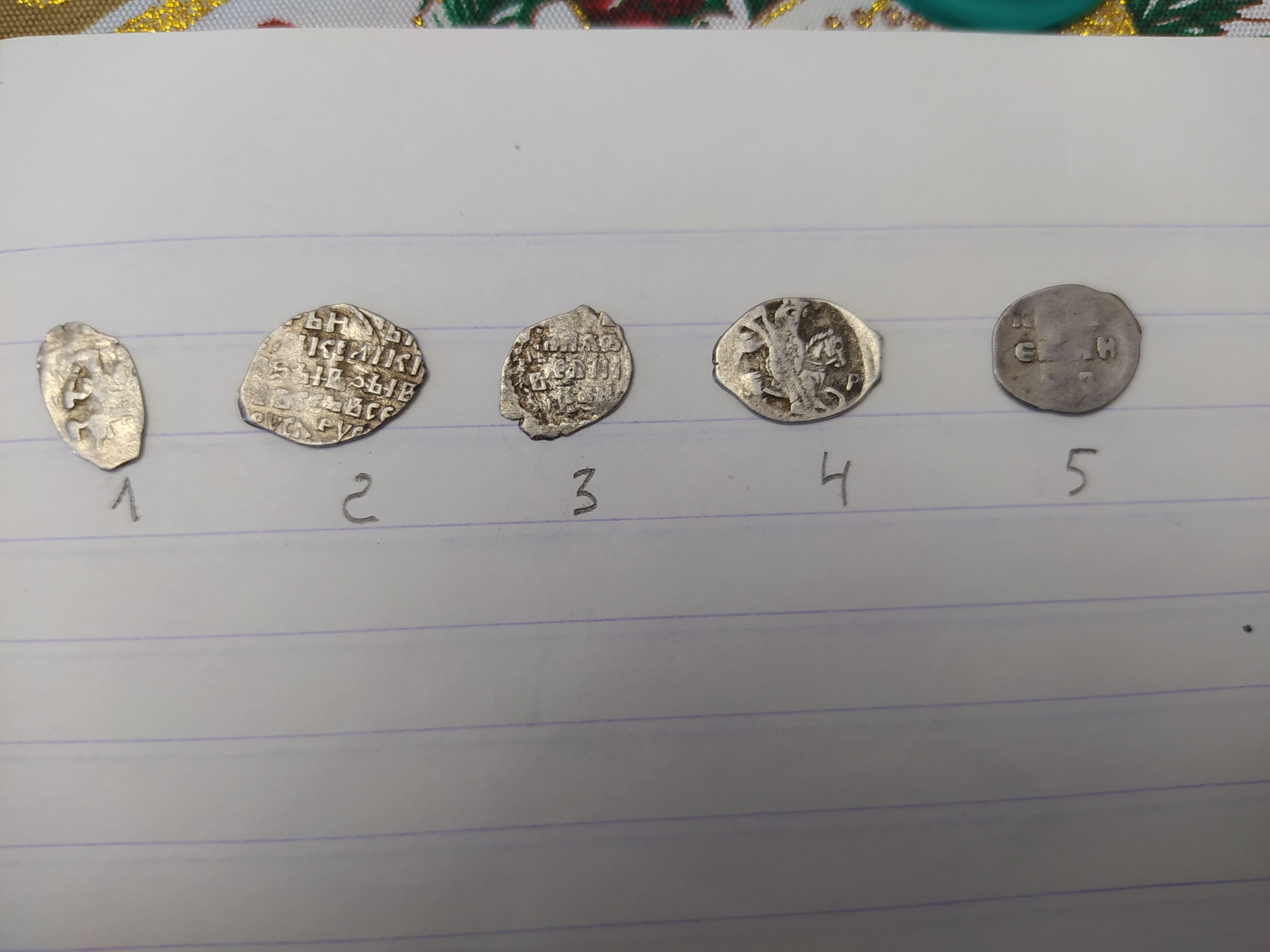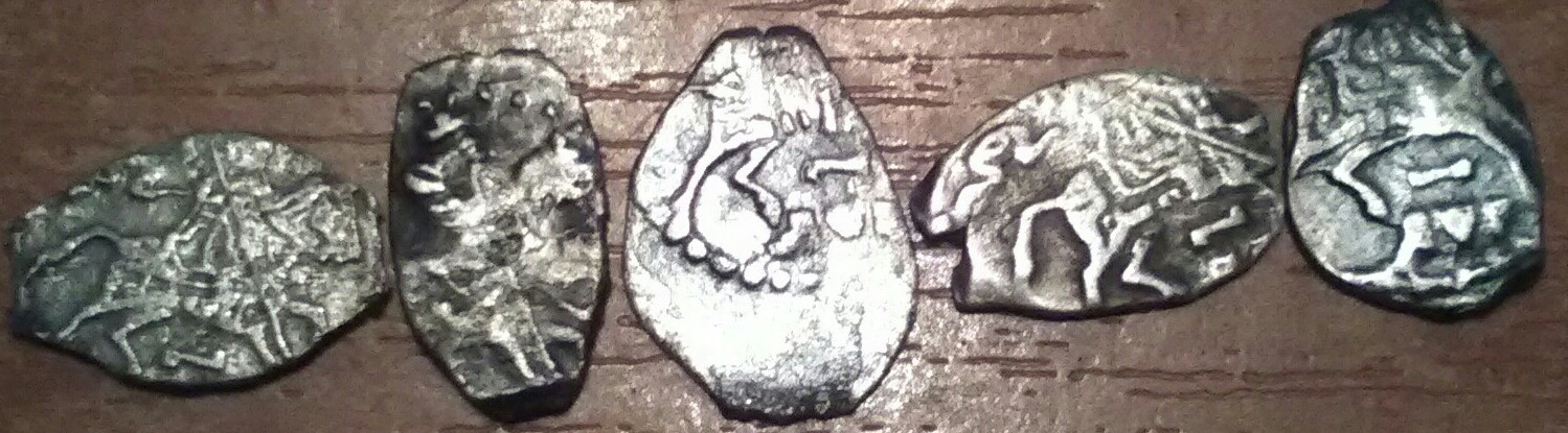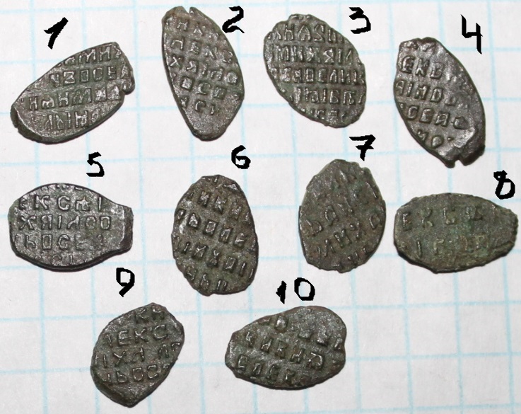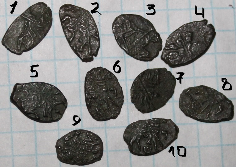 QUOTE(ЭД РАХМЕТ @ Feb 10 2022, 14:21) 1 - псковская копейка Грозного; 4,10,11,12,16 - его же московские денежки; 5 - плохо видно, вроде бы, его же московская полушка; 2,7,8,9,17 - московские копейки Михаила; 15 - его же деньга; 6 - его же полушка; 3 - копейка Алексея Михайловича; 13,14 - Петр, копейки периода единоличного правления обоих дворов - Кадашевского(13) и Старого(14), обе года 1702 или 1703 (точнее не могу разглядеть). Полушка Михаила, возможно, до 1тр; все остальное простое и не дорогое. |