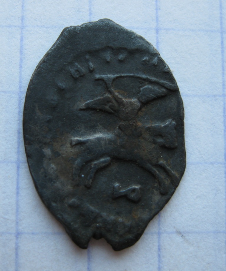Только что копнул чешуйку Михаила Фёдоровича, перечекан - с одной стороны всадник с копьём, с другой по-моему с саблей и с обеих сторон текст.