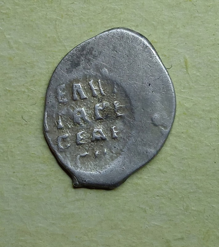QUOTE(Levonian @ May 16 2022, 10:29) Доброго всем. Вот такой немного странноватый Грозный с маленьким кружочком легенды - может от денги штемпель? Вес 0.68. прошу объяснить эту непонятку и подсказать номер по КГ. Псковская копейка Грозного КГ 74. В Пскове штемпелей денежек не использовалось; малый размер происходит оттого,что так штемпель был переведён с маточника, почему то именно у этого типа - частое явление. |