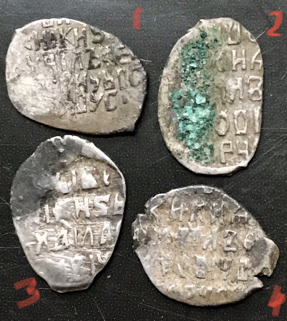 вехний ряд: датчанин и швед, ГКХ2 3587 (6) и 3424 (7). 10тр+ и 1000р+-. нижний ряд - простейшие копейки Михаила, псковская и московская. [/quote Спасибо Вам за помощь! Уважаемые, прошу помочь с определением и оценкой ещё двух. Вес: 0,47. 0,50. Заранее благодарен! Вложенные эскизы изображений |