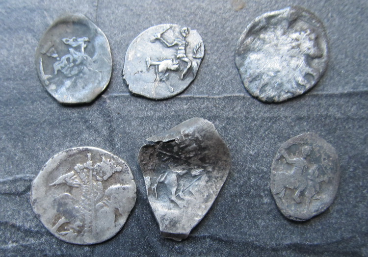 Фрагмент от. Василий Темный (1425-1462 гг.) Денга. Л.ст.:"Изображение всадника с