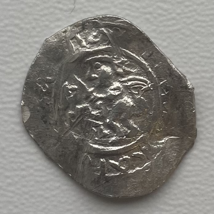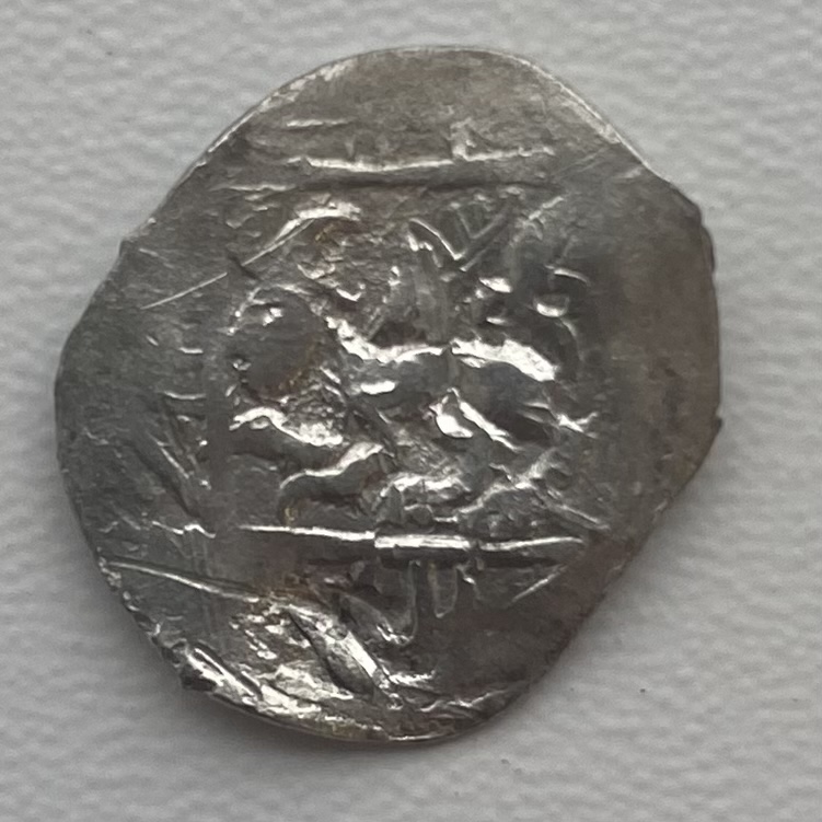 Помогите оценить. Звенигородско-Галицкое княжество. Серебряная денга Юрия Дмитриевича Звенигородского (1389-1434). На лицевой стороне изображены два человека лицом друг к другу, у сидящего справа в руке меч, круговая надпись (раскрывая сокращения и в современной транскрипции) «ПЕЧАТЬ КНЯЗЯ ЮРЬЕВА». На оборотной стороне в сложной рамке изображено крылатое четвероногое влево, с человеческой головой и загнутым вверх хвостом. Вложенные эскизы изображений |