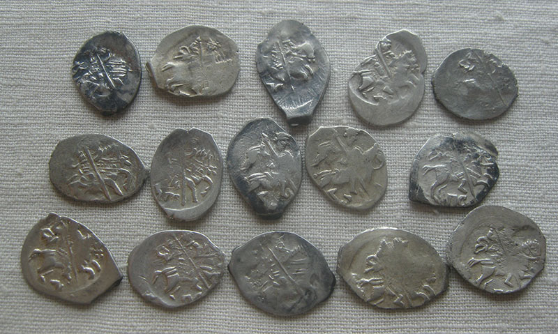 QUOTE(Блуждающий @ Dec 4 2022, 21:31) Первые монеты Василия 3, ничего интересного , не более 1000 за все Вторые две :слева Иван 3, справа Василий Тёмный , рублей по 500 за шт. Спасибо за помощь. |