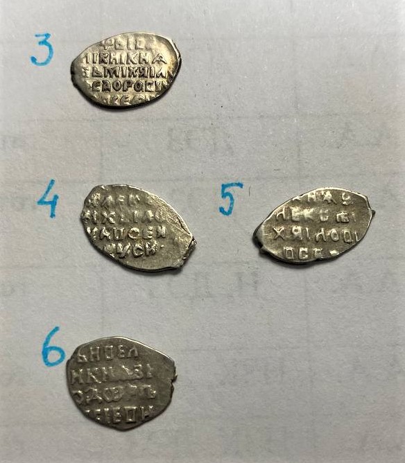 QUOTE(Tonny @ Jan 24 2023, 06:48) доброе времени суток! помоги с определением монет, желательно по ГК. Заранее благодарю! 1-Михаил Федорович КГ415 2-Михаил Федорович КГ406 3-Ярославская подделка КГ789 4-Алексей Михайлович КГ1000 5-Алексей Михайлович КГ945 6-Федор Алексеевич КГ1435 |