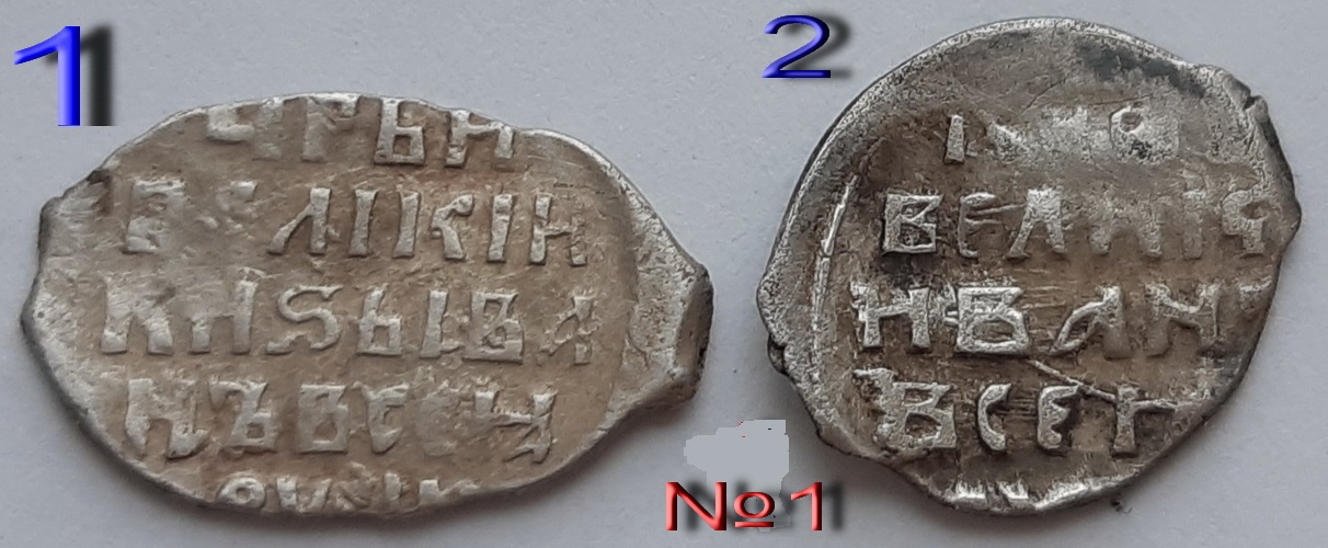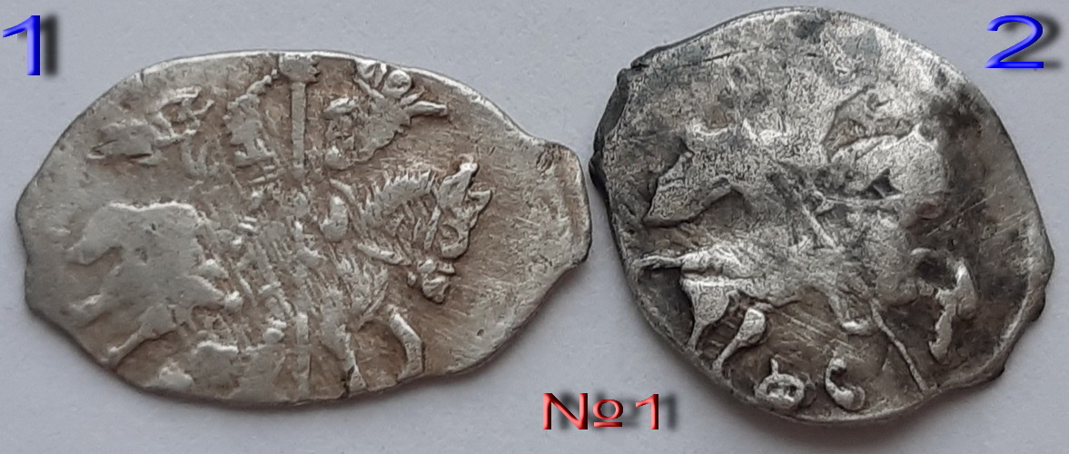 QUOTE(Алесгут @ Feb 11 2023, 12:48) Здравствуйте. Уважаемые форумчане нужна помощь в определении и оценке монеты. Фото переделал.Заранее спасибо. Новгородские копейки Грозного 1-КГ89(9ст.редкости) 2-КГ76 |